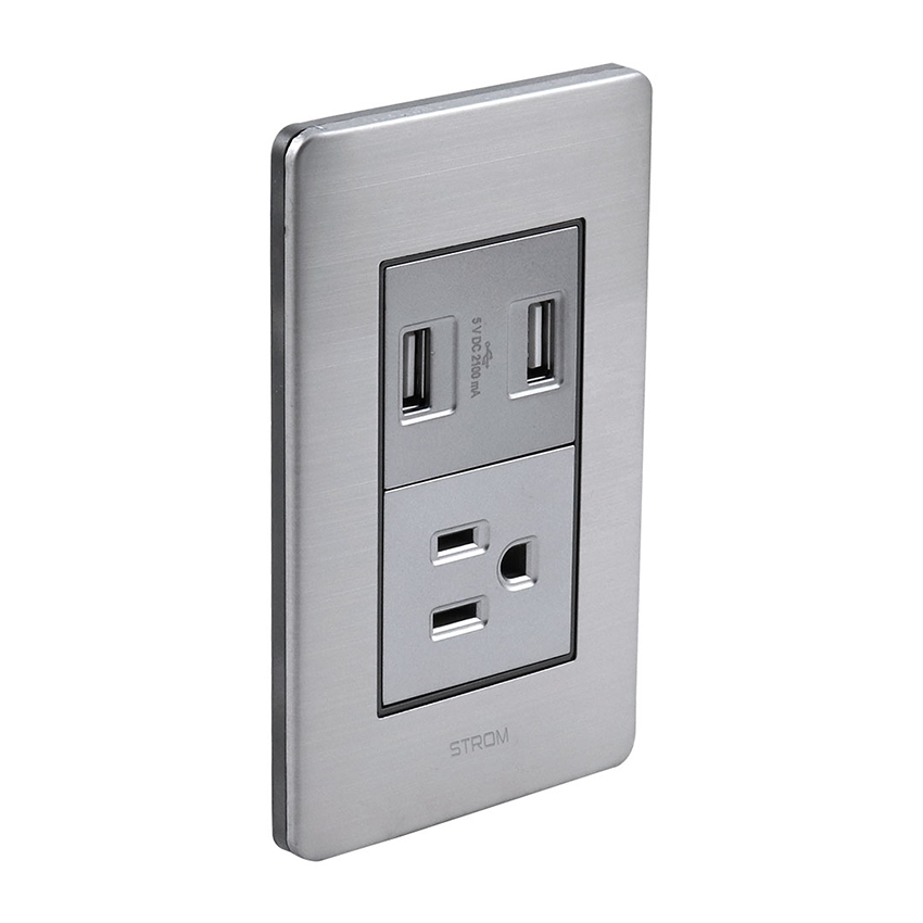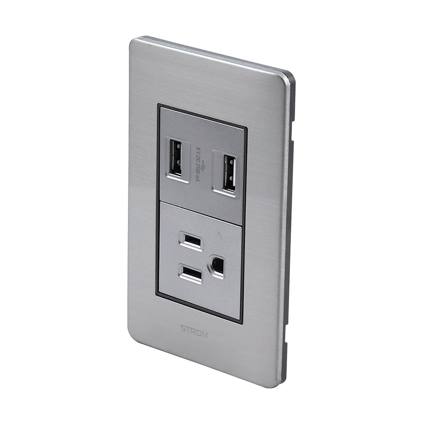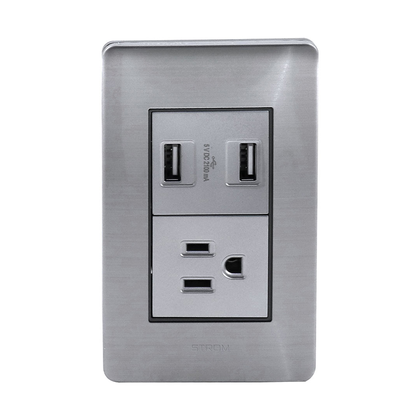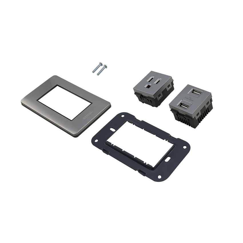 PLACA CON CONTACTO USB Y CONTACTO SENCILLO ATERRIZADO 36 mm
