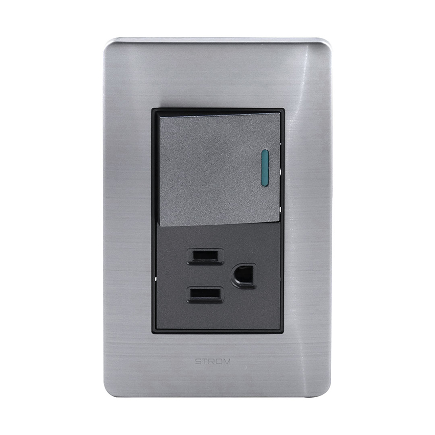 PLACA CON INTERRUPTOR SENCILLO Y CONTACTO ATERRIZADO 36 mm